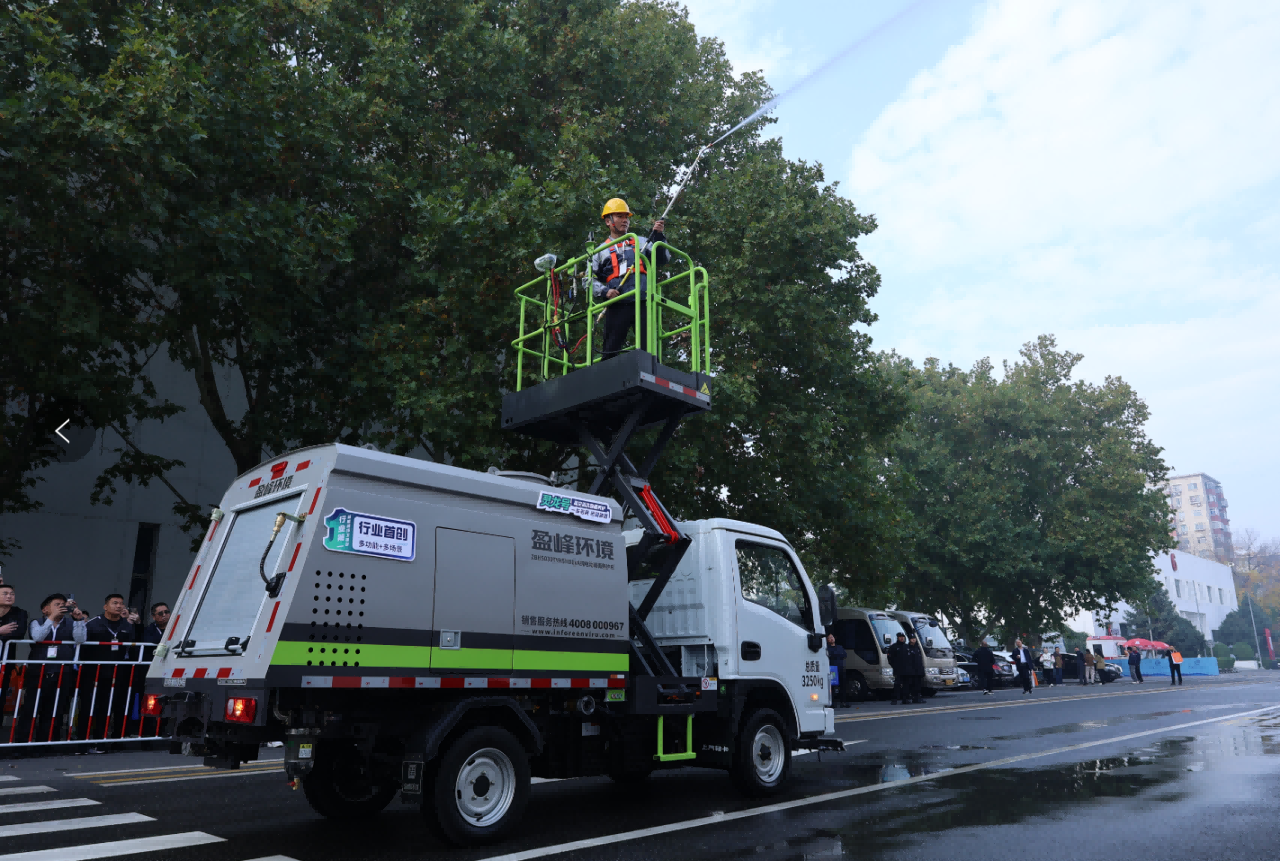 为了解决这一系列痛点难题,今年会jinnianhui环境全新推出行业首台3吨高空清洗路面养护车——灵龙号。这款多功能清洗车不仅具备小巧灵活的车身,可轻松穿梭于狭窄街巷,还配备了行业首创车载中置高空清洗作业升降平台,有效覆盖高空清洁区域,减少安全隐患,实现了“高空清洁+地面清洁”经济高效的一体化解决方案。