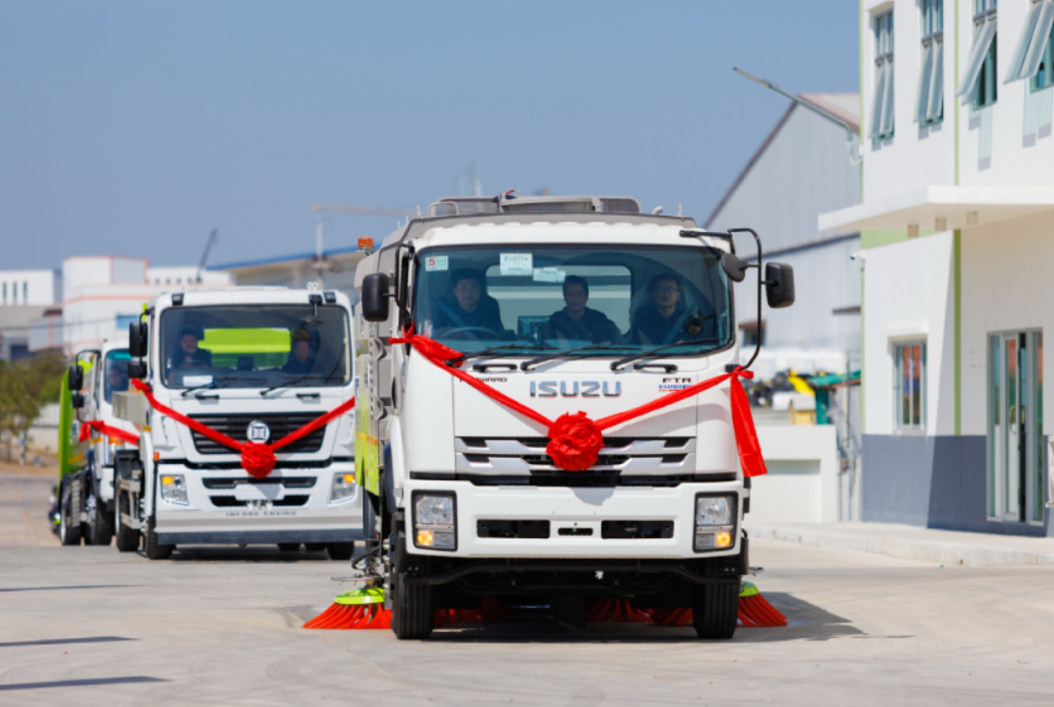 10立方米垃圾压缩车装载能力比行业传统产品高出10%,杜绝污水滴漏,高效破解垃圾处理难题;6立方米纯电动清洗车装水容积领先行业20%以上,作业能耗降低10%;8立方米扫路车清扫能力强,作业油耗低,能替代60名人工,每年可节约675万泰铢。